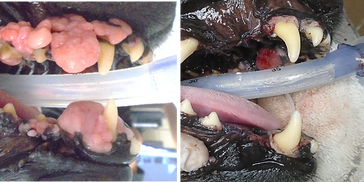 An oral mass is a benign or tumor associated with the gums, teeth, tongue, cheeks, roof of the mouth or the lips. They may get quite large before the pet has any symptoms. Appropriate imaging and biopsy are key to surgical planning. Depending on the tumor type, resection can often be curative. However, for certain tumor types additional treatment may be necessary including referral to a veterinary oncologist for treatment such as radiation or chemotherapy,