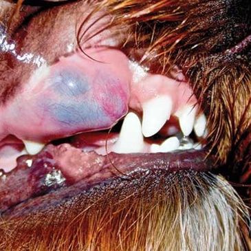 An oral mass is a benign or tumor associated with the gums, teeth, tongue, cheeks, roof of the mouth or the lips. They may get quite large before the pet has any symptoms. Appropriate imaging and biopsy are key to surgical planning. Depending on the tumor type, resection can often be curative. However, for certain tumor types additional